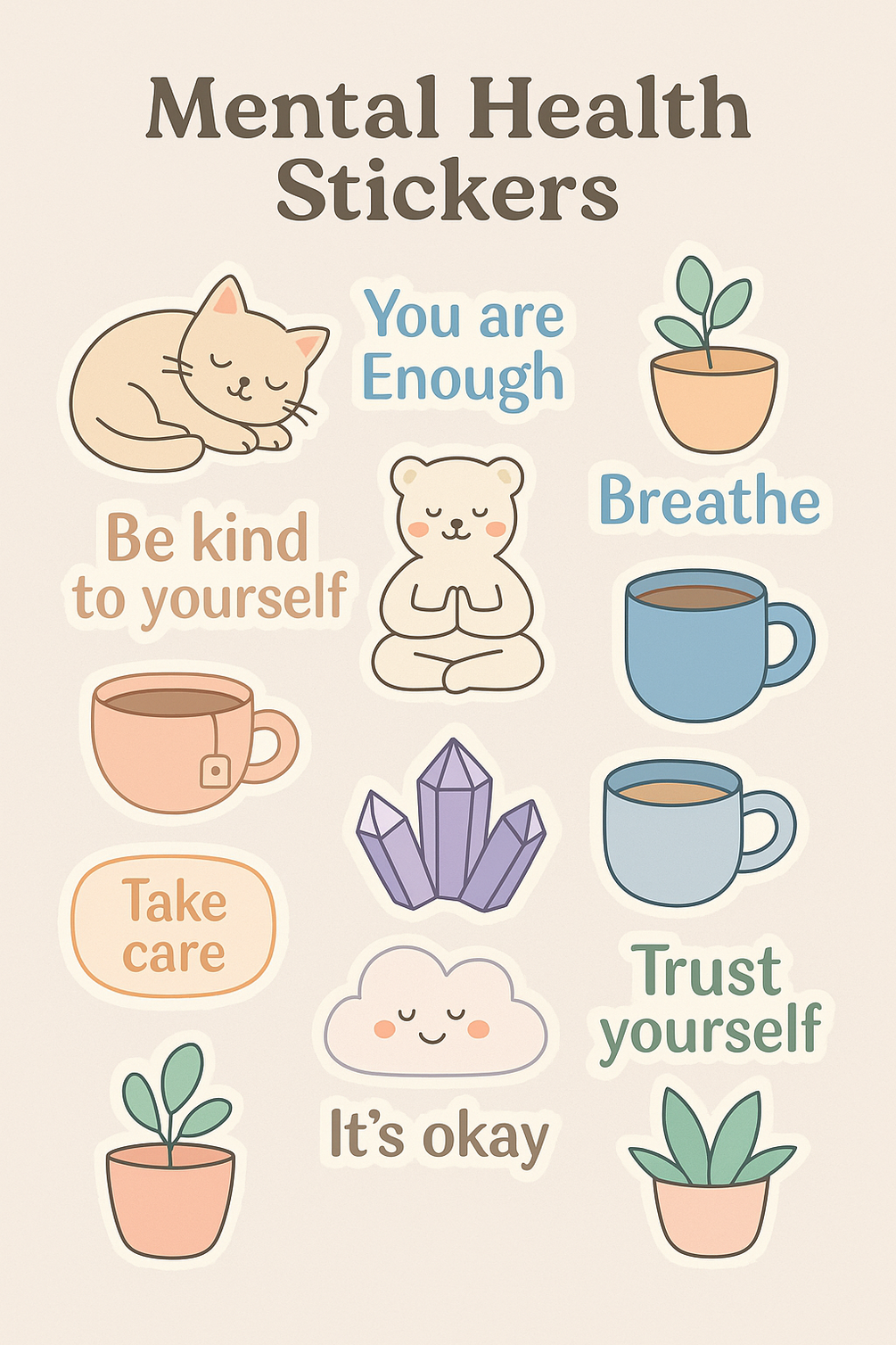 A beautiful, calming collection of printable mental health stickers designed to inspire positivity, mindfulness, and self-love. Perfect for journals, planners, or digital scrapbooks!